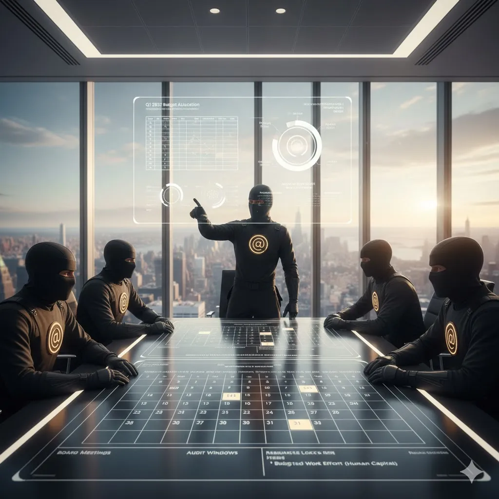 - Event Planning and Scheduling: The modern compliance calendar is crowded. Between quarterly board meetings and annual SOC 2 or ISO 27001 audits, the timing must be precise. During the annual onboarding phase, we look 12 months ahead. We schedule your audit windows and board presentations well in advance, ensuring that "compliance" never surprises the "business."