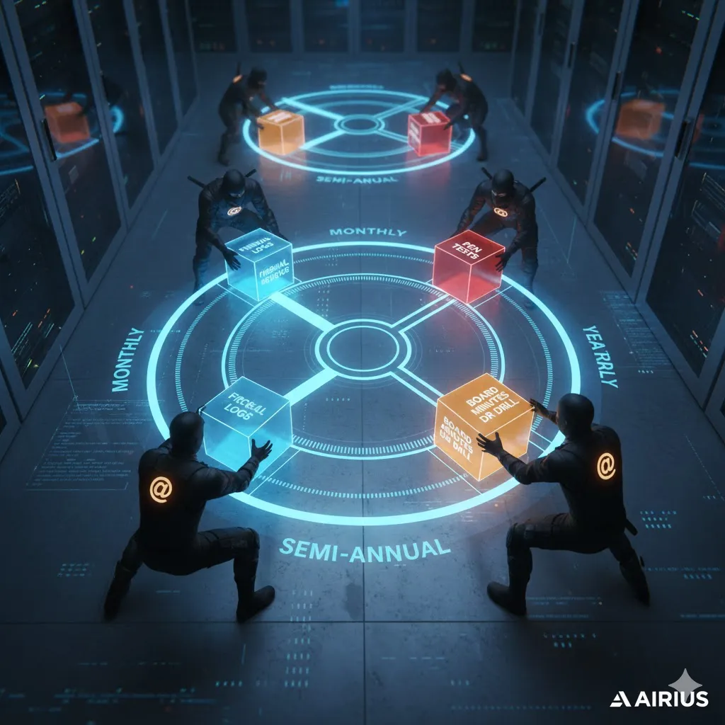 In the Operational Pillar, the "doing" of security occurs. This is often where organizations fail because they treat evidence collection as an annual "scavenger hunt" rather than a scheduled business process. At Airius, we automate and manualize the cadence of evidence replacement to ensure that the audit trail is never cold.